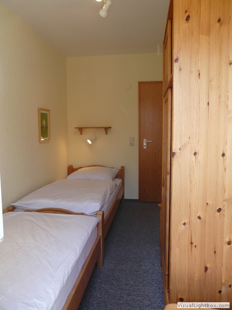Schlafzimmer: Doppelbett, Kleiderschrank |